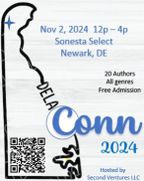 DelaConn is a one-of-a-kind, intimate, author/reader event in Newark, Delaware in March 2026. Designed for book lovers, it has attracted some incredible authors in a variety of genres. We can't wait to see you there! Admission is $5 for readers and guests, so bring your buddies, shop for holiday gifts, grab a glass of wine and lounge in